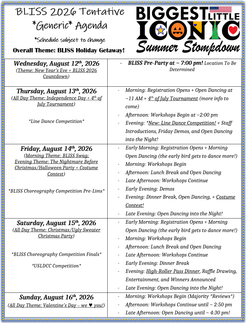 BLISS 2026 Tentative, Generic Agenda