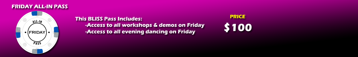 All sales are final. BLISS Passes are NON-REFUNDABLE, but in the event a registrant can no longer attend, we will credit their purchase to the next year's BLISS event, as long as the request is made within a reasonable time prior to the event start date. Nevada Line Dance Association, LLC maintains full rights to determine what is considered a "reasonable time." We strive to accommodate our event attendees as much as possible. For more information, please contact us directly.